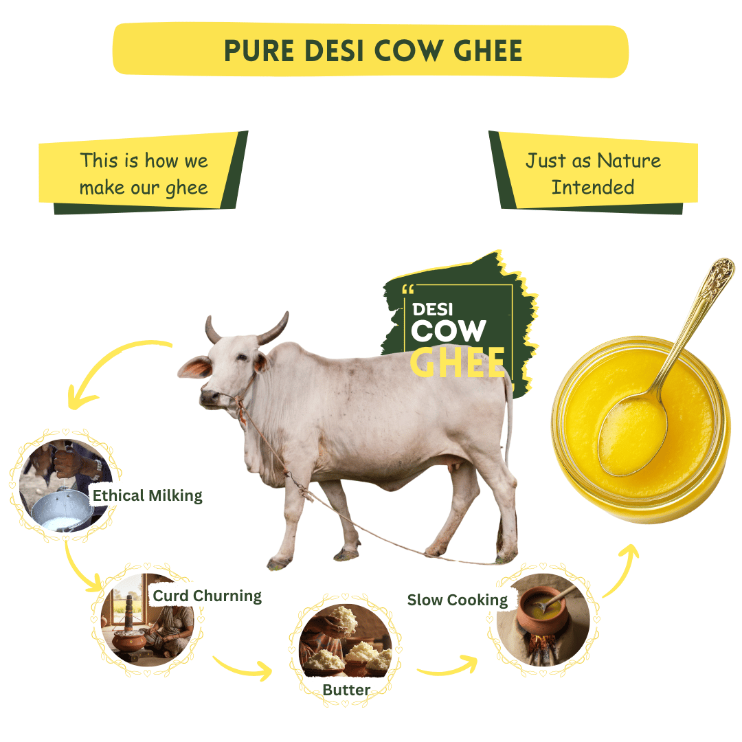 - Made from free-grazed Desi cow milk