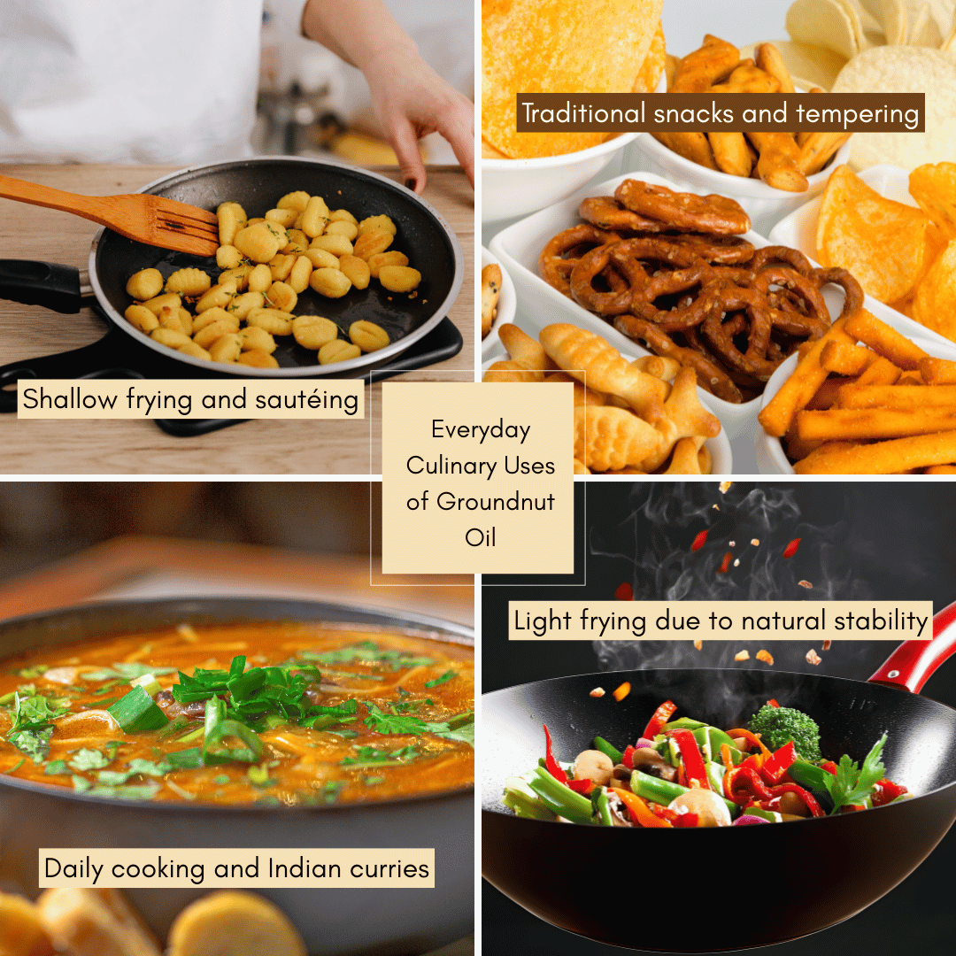 In traditional Indian kitchens, groundnut oil has been valued for its light texture and digestive comfort, especially for regular meals.