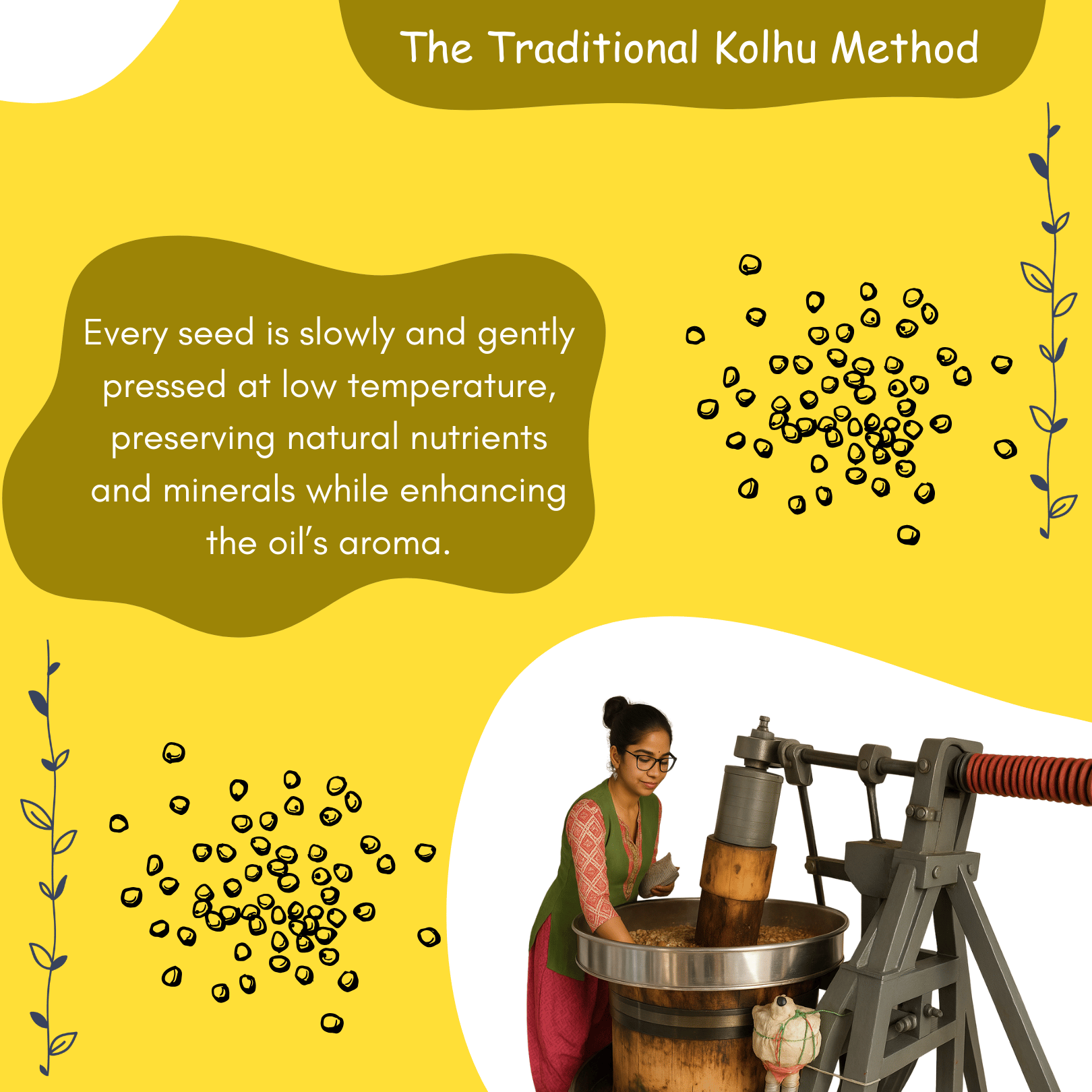 We use carefully sourced mustard seeds and extract oil in small batches, ensuring purity, freshness, and consistency. Each bottle represents:
