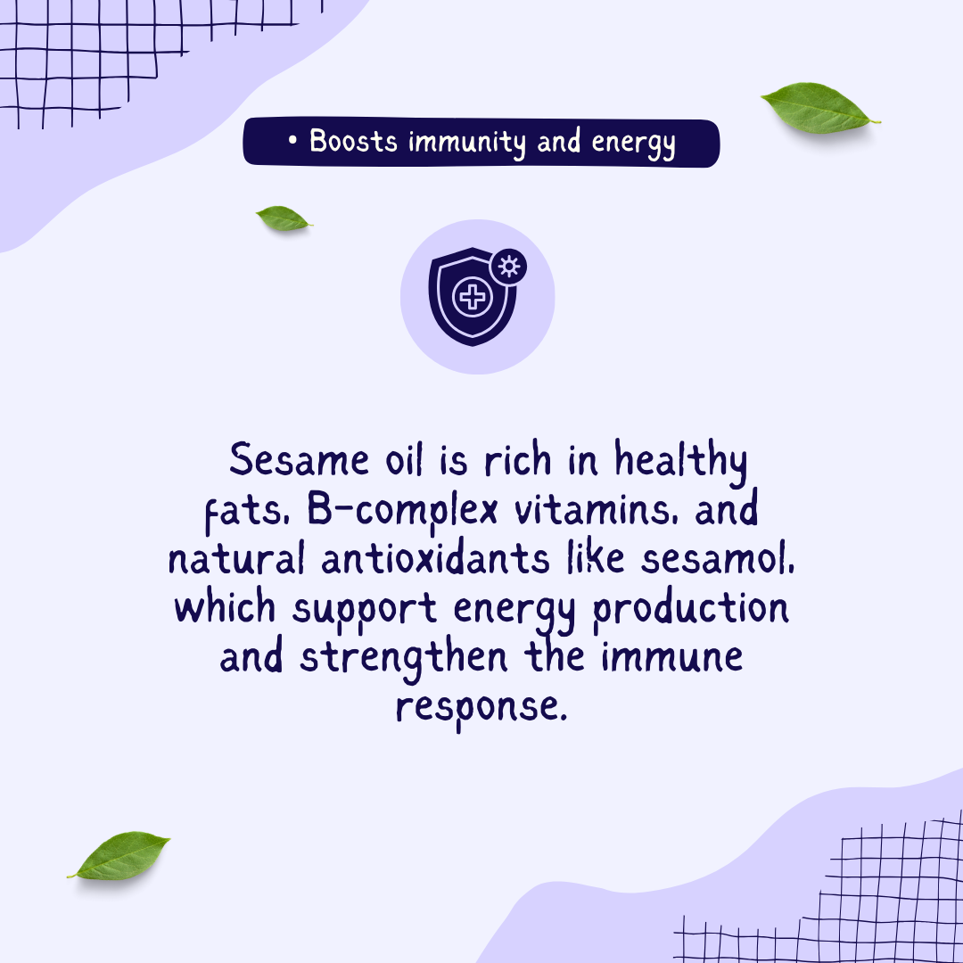 In Ayurveda, sesame oil is known as “Taila Raja” — the king of oils — valued for its deep nourishing and balancing qualities.